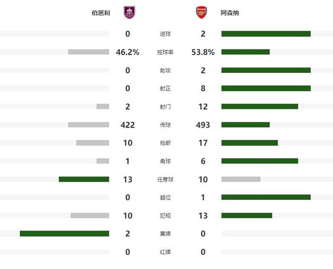 第23分钟萨卡突入禁区后打门,可惜角度太正被伯恩利门将化解,不过在第35分钟阿森纳还是扩大领先优势,特罗萨德左路下底传中,门前包抄的赖斯高高跃起头球破门,阿森纳也带着2球的领先,回到了中场更衣室。